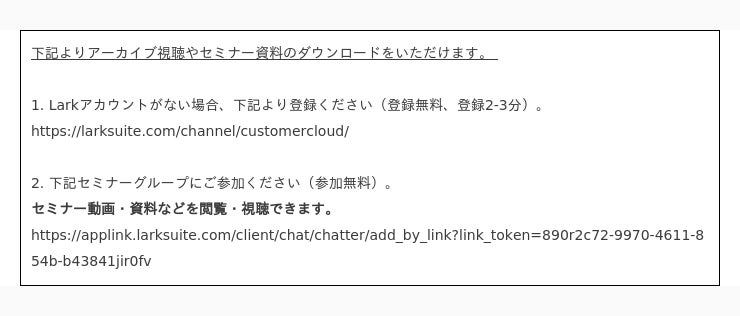 Lark登録無料:https://larksuite.com/channel/customercloud