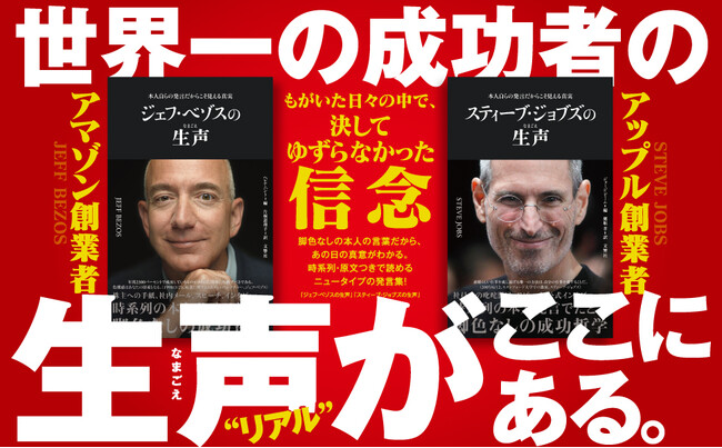 株式会社文響社(本社:東京都港区、代表取締役:山本周嗣)は21世紀の世界的著名人のありのままの発言を収録する「生声(なまごえ)」シリーズを創刊いたしました。2022年10月6日、第1弾の『ジェフ・ベゾスの生声』『スティーブ・ジョブズの生声』を2作同時発売いたします。