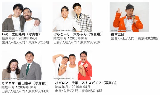 長田さん(チョコレートプラネット)、松尾さん(チョコレートプラネット) 、太田さん(いぬ)、大ちゃん(ブラゴーリ)、磯本五段さん、 益田さん(カゲヤマ)、千葉さん(バビロン)