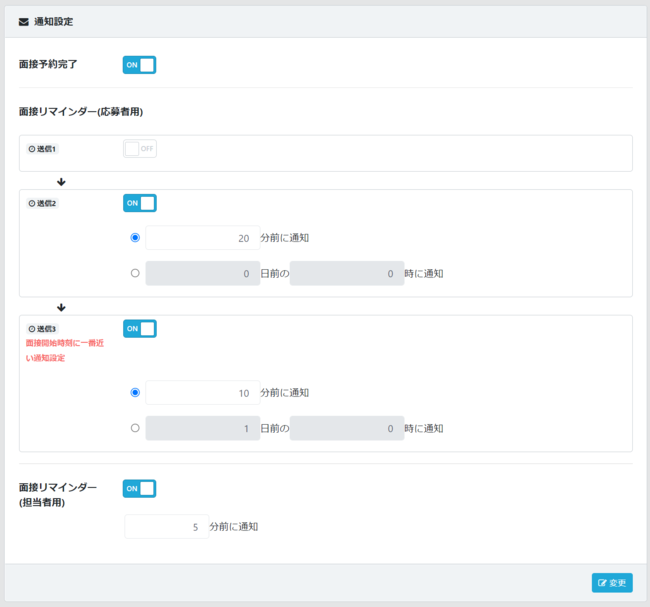 求職者へのメール・SMSリマインダー通知が複数回送信可能に