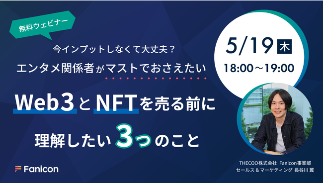 THECOO株式会社(本社:東京都渋谷区、代表取締役CEO:平良真人、証券コード:4255)は、2022年5月19日(木)18:00~19:00にてエンタメ業界関係者に向けた無料ウェビナー「今インプットしなくて大丈夫?エンタメ関係者がマストでおさえたいWeb3とNFTを売る前に理解したい3つのこと」を開催いたします。