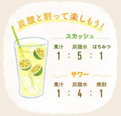 本商品 原液1に対し、水や炭酸水で4~8倍に薄めてジュースとしてお楽しみいただけます。その他にも、焼き魚、鍋物、ドレッシングなど料理にもお使いいただけます。