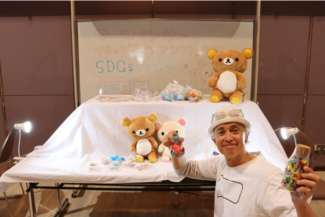 マーク・パンサーさんは日ごろからペットボトルにごみを詰めてアート作品にする活動などをしており、今回は「おいでませ山口☆スマイルシティふぇすた」にてマーク・パンサーさんに制作のコツや、どのようなSDGs活動をされているかなどを教えてもらえるワークショップを実施しました。