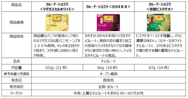当社は、1918年に日本で初めて原料カカオ豆からのチョコレートの一貫製造に成功しました。「カレ・ド・ショコラ」は、日本のチョコレート製造のパイオニアである当社が、原料・製法・形など細部までこだわり抜いたチョコレートで、「目指すのは、いちばんおいしいチョコレート」を目標に掲げています。今回の新商品では、「カレ・ド・ショコラ」だからこそ味わえる、本格的なチョコレートとしてのおいしさやこだわり抜いた贅沢な味わいをお楽しみいただけます。上質で優雅な時間を彩る新商品の発売により、お客様に笑顔をお届けしてまいります。