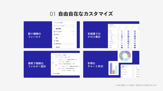 多様なチャート形式にも対応しており、まずはピボットテーブルを提供します。チャートの種類は順次追加予定で、棒グラフや円グラフなどの提供も計画しています。