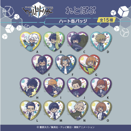 れとぽぷで描かれた隊員毎のハート型缶バッジです。