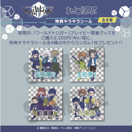 アニメ、ゲームあらゆるジャンルのキャラクター商品や販促グッズの企画、製造、販売をする株式会社プレイフルマインドカンパニー(代表取締役:大塚清隆、本社:東京都台東区)はアニメ「ワールドトリガー」より、描き起こしイラスト“れとぽぷシリーズ”で描かれた様々なグッズを、かるたっすオンラインストア・アニメガ/ソフマップで先行予約を開始致します。