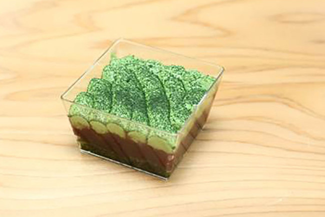 末永く明るい未来を祈願し「虹」をテーマに創作した細工錦玉羹です。