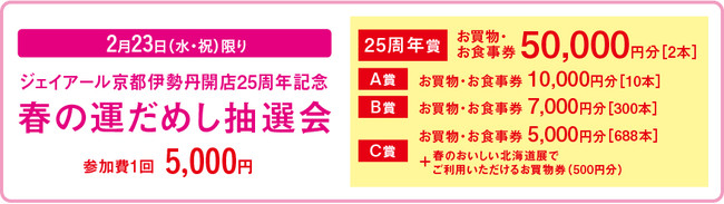 1等は5万円分のお買物券が当たる空くじなしのお得な抽選会を開催します。