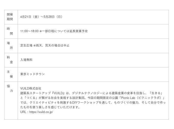 建築系スタートアップ「VUILD」とコラボレーションしたクリエイティビティあふれるユニークな公園で、手ぶらピクニックを楽しもう!