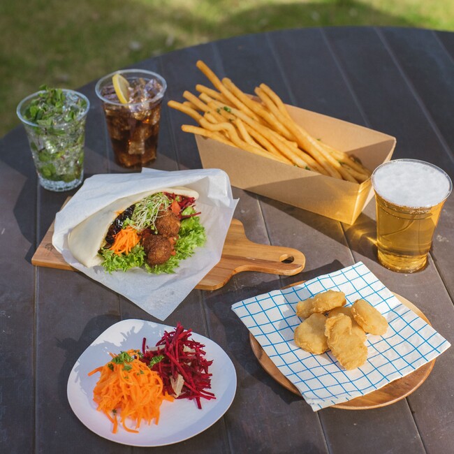 ズブロッカを使用したカクテルをはじめとしたアルコール、クラフトコーラなどのソフトドリンク、さらにファラフェルサンドやロングフライドポテトなどの軽食を販売します。