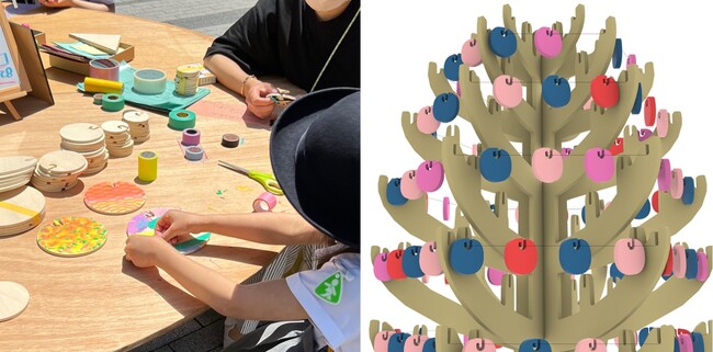 芝生広場の一角に、みんなで育てるガーランド・ツリーが登場。木片のオーナメントを思い思いに彩って、ツリーに飾りつけます。みんなで素敵なツリーを育てませんか。