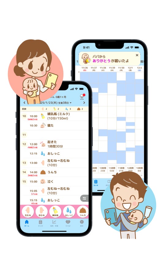 本機能は、家族共有を利用する家族が、ワンタップで感謝の気持ちを送り合える仕組みです。同年9月に開始した「授乳なかまの声」とあわせて、孤育ての負担を緩和しトモイクを後押しします。