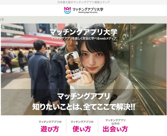 『マッチングアプリ大学』 は、株式会社ネクストレベルが運営する国内最大級の「マッチングアプリ」特化メディアです。恋活・婚活・安全な出会いに関する正しい情報を発信し、ユーザーが自分に合ったアプリを選べるよう支援しています。