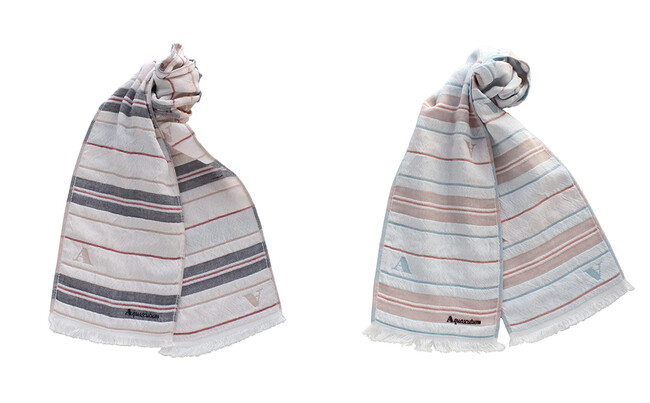 1879年(明治12年)創業のブルーミング中西株式会社(本社 東京都中央区 取締役社長 中西一)は、アクアスキュータムのロングタオルを当社直営のオンラインショップ【ハンカチーフギャラリー】及び、一部百貨店にて発売しました。