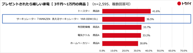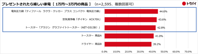 ■ 【アンケート結果】プレゼントされたら嬉しい家電は「ヒーター&クーラー」「電気圧力鍋」「空気清浄機」「トースター」「サーキュレーター」