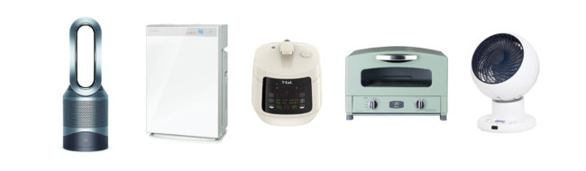 「トクバイ」ユーザー2,595名を対象に「新生活に関するアンケート」を実施したところ、プレゼントされたら嬉しい家電は「ヒーター&クーラー」「電気圧力鍋」「空気清浄機」「トースター」「サーキュレーター」があがりました。本キャンペーンでは、これらの商品を抽選で20名様にプレゼントします。