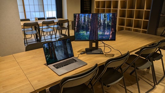 リモートワーク用の高速Wi-Fiや電源はもちろん、作業用モニターも5台常備しており、無料で利用可能。