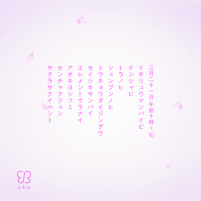 2月15日(水)発売の「uka ネイルオイル サクラサク」と2月21日(火)発売の「サクラサクキット by uka×HOSOO」の発売を記念した、先着100名の ukainn さま限定イベント。