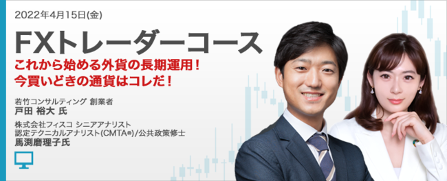 株式会社外為どっとコム(本社:東京都港区、代表取締役社長:竹内 淳)は、明日4月15日(金)19時より、当社主催の無料オンラインセミナー『FXトレーダーコース これから始める外貨の長期運用!今買いどきの通貨はコレだ!』を開催することとなりましたので、お知らせいたします。