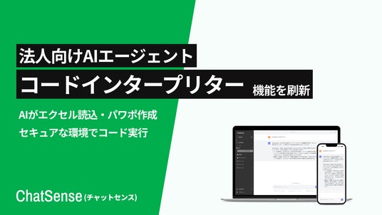 株式会社ナレッジセンスは、セキュリティ高い環境でChatGPTを活用できる法人向け生成AIエージェントサービス「ChatSense」を提供しております。この度ChatSenseは、ファイルの入力・出力が可能なAIエージェント機能「コードインタープリター」について、大幅なアップデートを実施したことをお知らせいたします。「コードインタープリター」機能の詳細は、こちらをご覧ください。 https://chatsense.jp/function/code-interpreter?utm_source=262