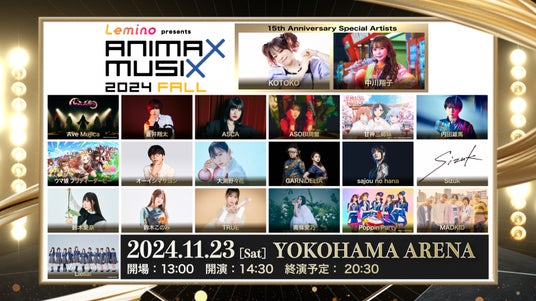アニメ専門チャンネル『アニマックス』を運営する株式会社アニマックスブロードキャスト・ジャパン(代表取締役CEO:野島亮司、代表取締役社長:滝山正夫、以下アニマックス)は、株式会社NTTドコモ(代表取締役社長:前田義晃)と共催で、2024年11月23日(土・祝)に横浜アリーナで開催される『Lemino presents ANIMAX MUSIX 2024 FALL』のオフィシャルグッズの事前販売を、10月11日(金)より、ANIMAX MUSIX公式サイトで開始したことをお知らせします。