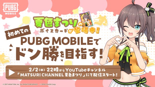 ボイスカードコラボを記念して、2月2日(日) 22:00から「Matsuri Channel 夏色まつり」YouTubeチャンネルにて夏色まつりさんがPUBG MOBILEをプレイ!