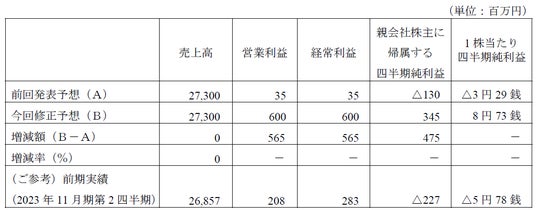 1. 2024年11月期第2四半期連結累計期間連結業績予想数値の修正