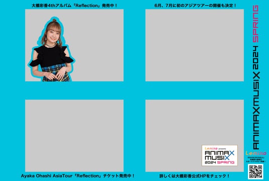 この「セルフ写真館」とLeminoとのコラボレーション第2弾の施策が決定いたしました。ドコモと、アニメ専門チャンネル「アニマックス」を運営する株式会社アニマックスブロードキャスト・ジャパンとの共催で2024年3月30日(土)に開催するイベント「Lemino presents ANIMAX MUSIX 2024 SPRING」への出演が決定している、茅原実里、May’n、大橋彩香のオリジナルフレームを、期間限定で提供します。