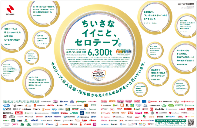 当社では、セロテープ(R)がサステナブルな製品であることから、全国の企業や小売店が使用しているテープをセロテープ(R)に変えるだけの小さなアクションで、環境課題に貢献できることを知っていただくために「Small Action For the Future」という活動を推進しています。本広告では、この活動に賛同いただき、セロテープ(R)を導入している企業・団体様にアンケートを実施し、ご回答いただいたコメントをご紹介しています。