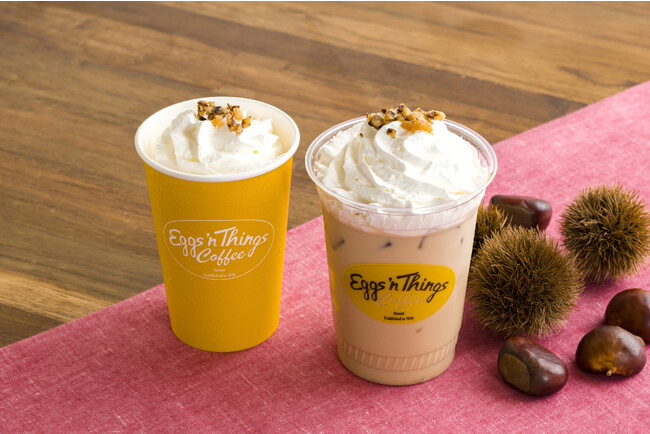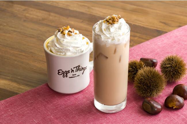 Eggs ’n ThingsおよびEggs ’n Things Coffee全店舗で『モンブランパンケーキ』と『クリーミーマッシュルーム ロコ・モコ』を9月1日(金)~9月28日(木)の期間限定で販売いたします。『モンブランパンケーキ』は、ふわりと紅茶が香る生地の間にミルククリームを重ねて、栗の風味豊かなマロンクリームで包みました。甘さ控えめなホイップクリームとご一緒にお召し上がりください。『クリーミーマッシュルーム ロコ・モコ』は、3種のきのこ(エリンギ、舞茸、しめじ)を加えたホワイトソースをパルメザンチーズで焼き上げ、香りの良いトリュフオイルで仕上げました。また、ほんのり栗が香る『マロンシェイク』やエスプレッソのほろ苦さを加えた『マロンラテ』など季節限定のドリンクもご用意いたします。ぜひ、Eggs ’n Thingsで秋ならではのお食事をお楽しみください!