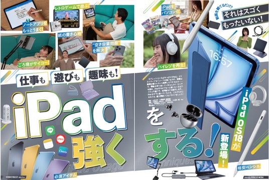 タブレットといえばやっぱり「iPad」。クリエイティブなイメージが強いものの、実際は動画を観たりネット検索したりするだけ……で、機能を持て余していませんか? そこで今回は、iPad を今よりもっと使いたくなるアイテムや裏ワザ、活用術などを紹介します。iPadをすでに使っている人も、これからはじめる人も、最大限使いこなしちゃいましょう!