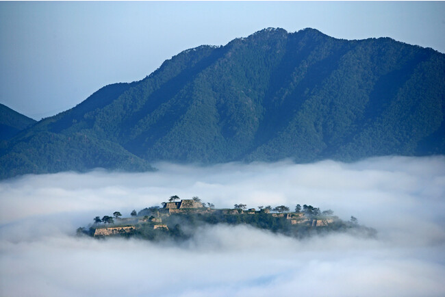 「一生に一度は見たい絶景」雲海のベストシーズンは10月~11月。よく晴れた朝には朝霧を纏い、天空の雲に竹田城跡が浮かぶような幻想的な景色が広がります。