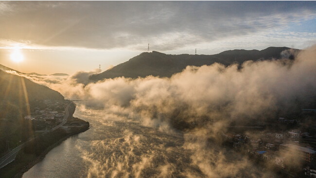 10月からの約半年、気候条件が揃った時だけ現れます。肱川あらし展望公園からはその絶景を一望できます。霧が町をのみ込み、うねりながら海へと扇状に広がる光景は、幻想的で息をのむ美しさです。