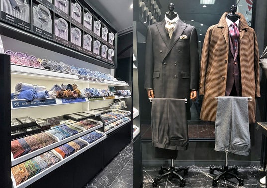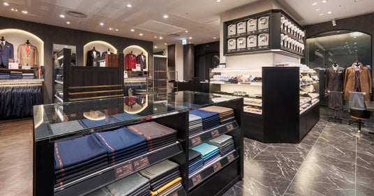 Premium Marunouchi 本店では、メンズとレディースで区画が分かれており、生地やモデル選びを広々とした空間でゆったりとお楽しみいただけます。