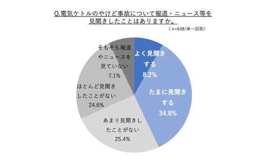 子どものやけど事故に至る危険性について情報収集している人、電気ケトルのやけど事故の報道・ニュース等を知っている人はいずれも4割程度にとどまる結果となった。