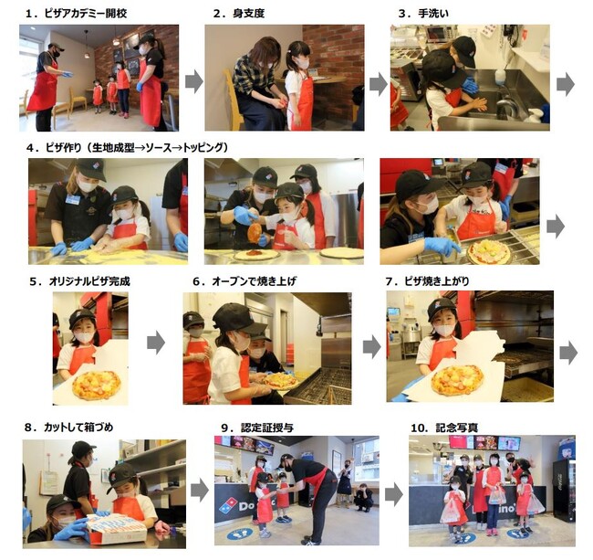 内容:ピザ作り体験、ピザお持ち帰り、認定証授与、ドミノ・ピザオリジナルのエプロンとキャップをプレゼント※