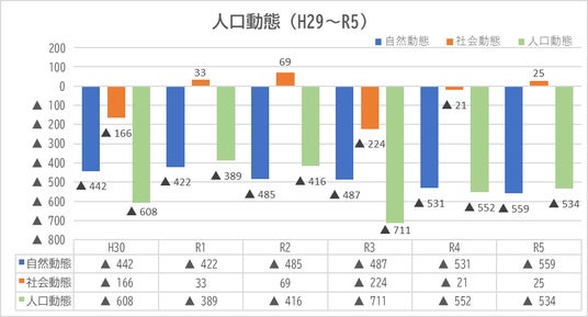 人口動態グラフ(H29~R5)
