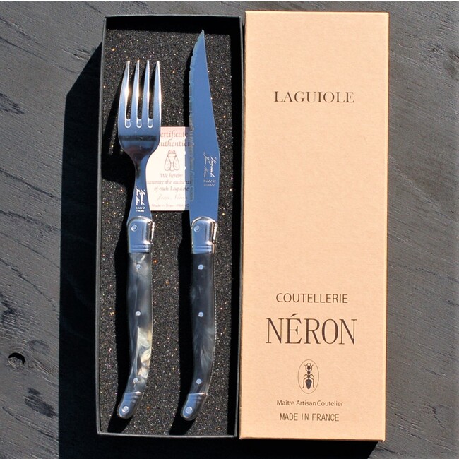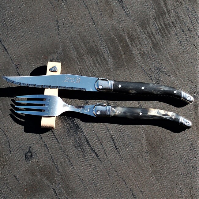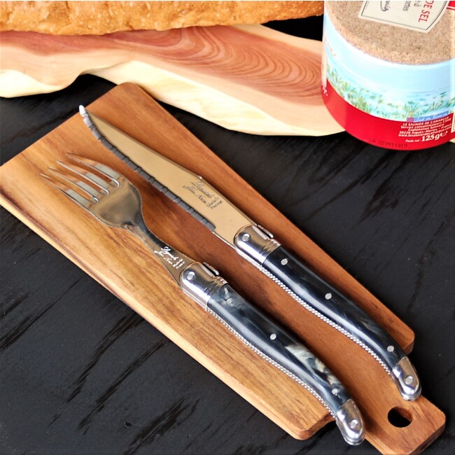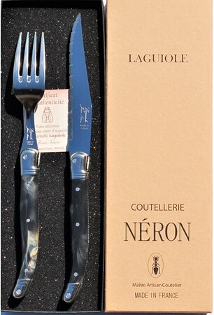 サイバール株式会社は ライヨール ABS ハンドル ステーキナイフ フォークセット 黒大理石風 ギフト箱入り フランス製 NERONの販売を開始しました。