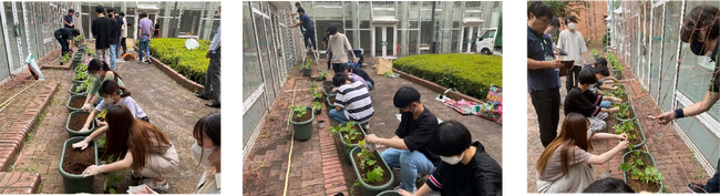 人間学部コミュニケーション社会学科では、都市型社会問題について学びながら、地域社会との関わり方を学習する「まちラボプロジェクト演習」を開講し、今年度は、キャンパスエコロジーに焦点を充てた活動を実施しています。2021年度より実施している「ヒートアイランド現象抑制に関する調査」をよりスケールさせ、また、自分たちがより積極的に環境活動に取り組む姿勢を見せることで、大学全体の環境意識を向上させることを目標に、造園業者と連携し、本郷キャンパス内にグリーンカーテンの設置作業を開始しました。