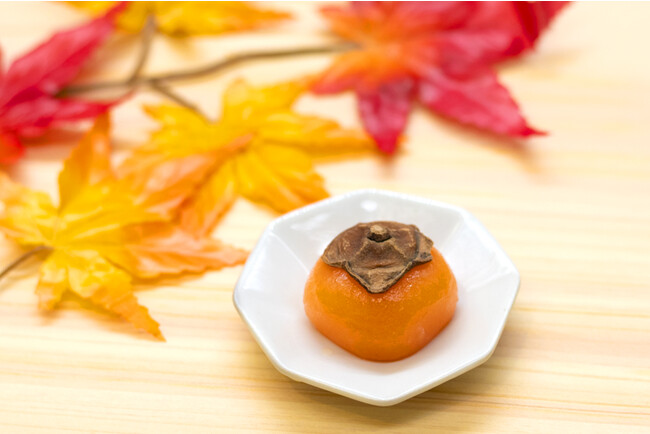 柿の形を模したカスタード入りの可愛らしい上新粉のお団子。