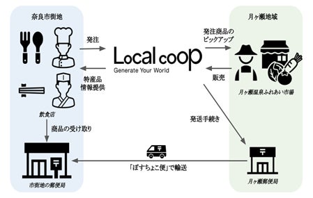 一方、『大和高原直送便』は、同じく郵便車両の空きスペースを有効活用し、月ヶ瀬の魅力的な野菜や物産を、月ヶ瀬地区から市街地に届ける新たな商流を創ることで、地域産業の維持・拡大等も目指している。