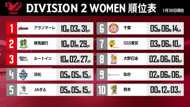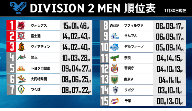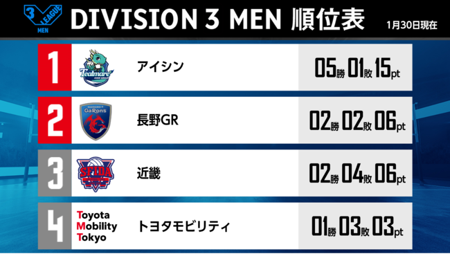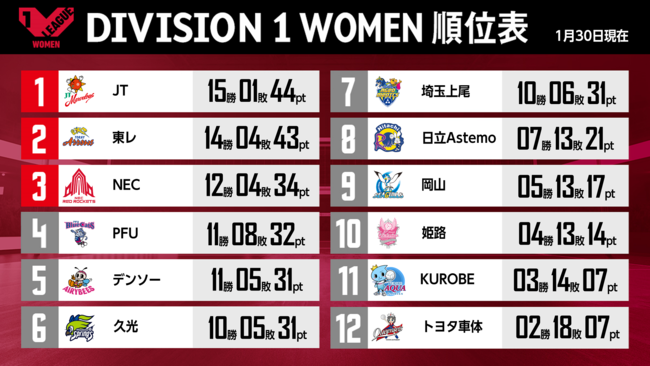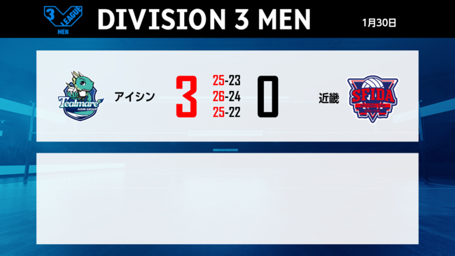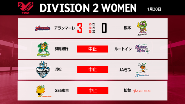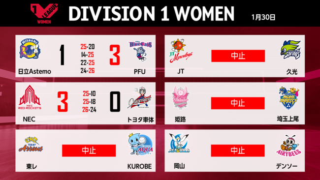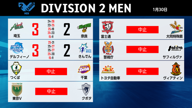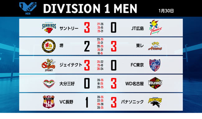 バレーボール国内最高峰リーグ V.LEAGUE【1月30日の試合結果】