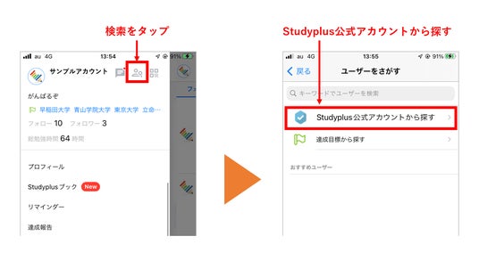 ・「Studyplus公式アカウントから探す」をタップ