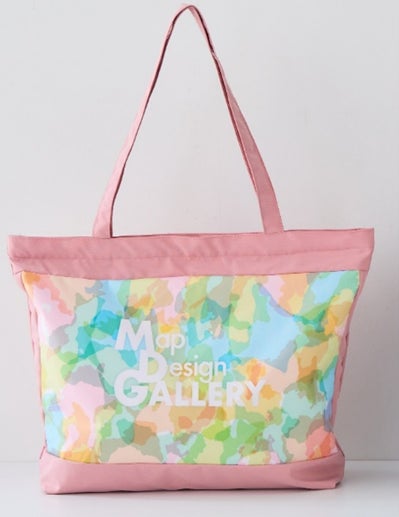 「2026年福袋」では、先着順で福袋限定特典のオリジナルバッグが付いてきます。全国47都道府県のシルエットをランダムに並べた鮮やかな迷彩風のデザインが施されており、ベースの色はネイビーとピンク(店舗限定カラー)の2色展開です。オンラインならびに店舗で販売するすべての福袋が対象です。