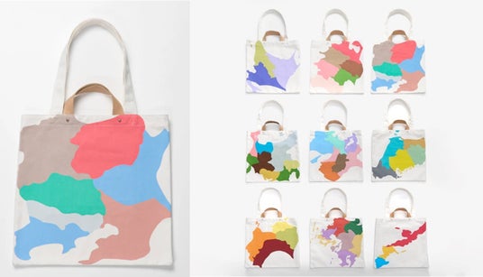 スクエアトートバッグは肩がけと手持ちの2way仕様で地図を大胆にデフォルメしたデザインです。北海道、東北、関東、中部、近畿、中国、四国、九州、沖縄の9つの地方からお選びいただけます。スクエアトートバッグを含む総額約¥11,000(税込)相当の地図柄アイテムが入っています。
