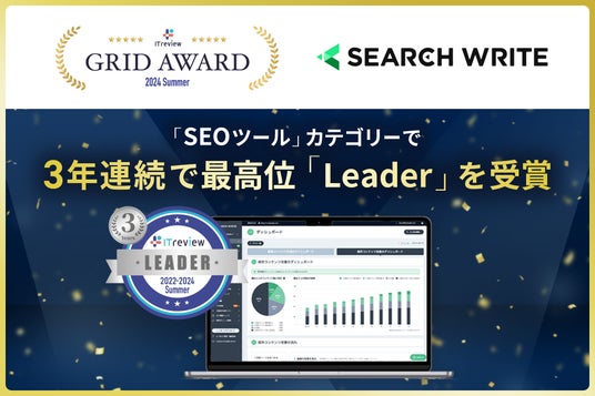 株式会社PLAN-B(東京都品川区、代表取締役:鳥居本真徳、以下「当社」)が提供する SEOツール「SEARCH WRITE(サーチライト)」は、国内最大級のIT製品・SaaSレビューサイト「ITreview」が表彰する「ITreview Grid Award 2024 Summer」の「SEOツール」部門において、3年連続で最高位の「Leader」を受賞しました。