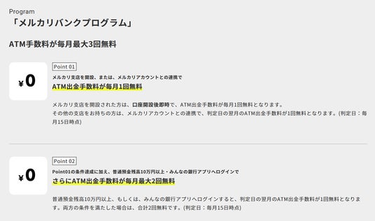 みんなの銀行が提供する優遇プログラム「メルカリバンクプログラム」に関する詳細はこちら