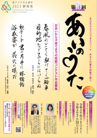 静岡県では、身近な人を大切にし子育てを応援する気運を醸成するため、平成26年から「あいのうた~出会いから子育てまでの短歌コンテスト~」を開催。節目の第10回開催となる今回も、審査員に俵万智さん、田中章義さんをお迎えし、7月31日まで作品を募集中。