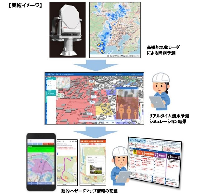 NTTアドバンステクノロジ株式会社(以下:NTT-AT、本社:東京都新宿区、代表取締役社長:伊東 匡)と、日本工営株式会社(以下:日本工営、本社:東京都千代田区、代表取締役社長:新屋 浩明)、株式会社東芝(以下:東芝、本社:東京都港区、代表執行役社長 CEO:島田 太郎)、東日本電信電話株式会社 埼玉西支店(以下:NTT東日本、支店長:丸山 猛)の4社は共同で、近年多発するゲリラ豪雨による突発的な水害への対策として、高精度かつリアルタイムな降雨・浸水予測データを活用した、自治体職員の災害対応業務の有効性に関する実証実験について、埼玉県ふじみ野市にご協力いただき2022年8月19日から開始します。